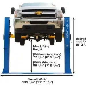 The Atlas® BP10000X commercial grade 2 post baseplate lift is built for those customers who want to lift heavy vehicles in a low ceiling garage. The Atlas® BP10000X incorporates the popular single point lock release columns have a middle welded support gusset that adds extra strength to the oversized columns. If you need to lift a one ton dually or a Smart Car and only have an 11 foot ceiling, this is the lift for your shop.