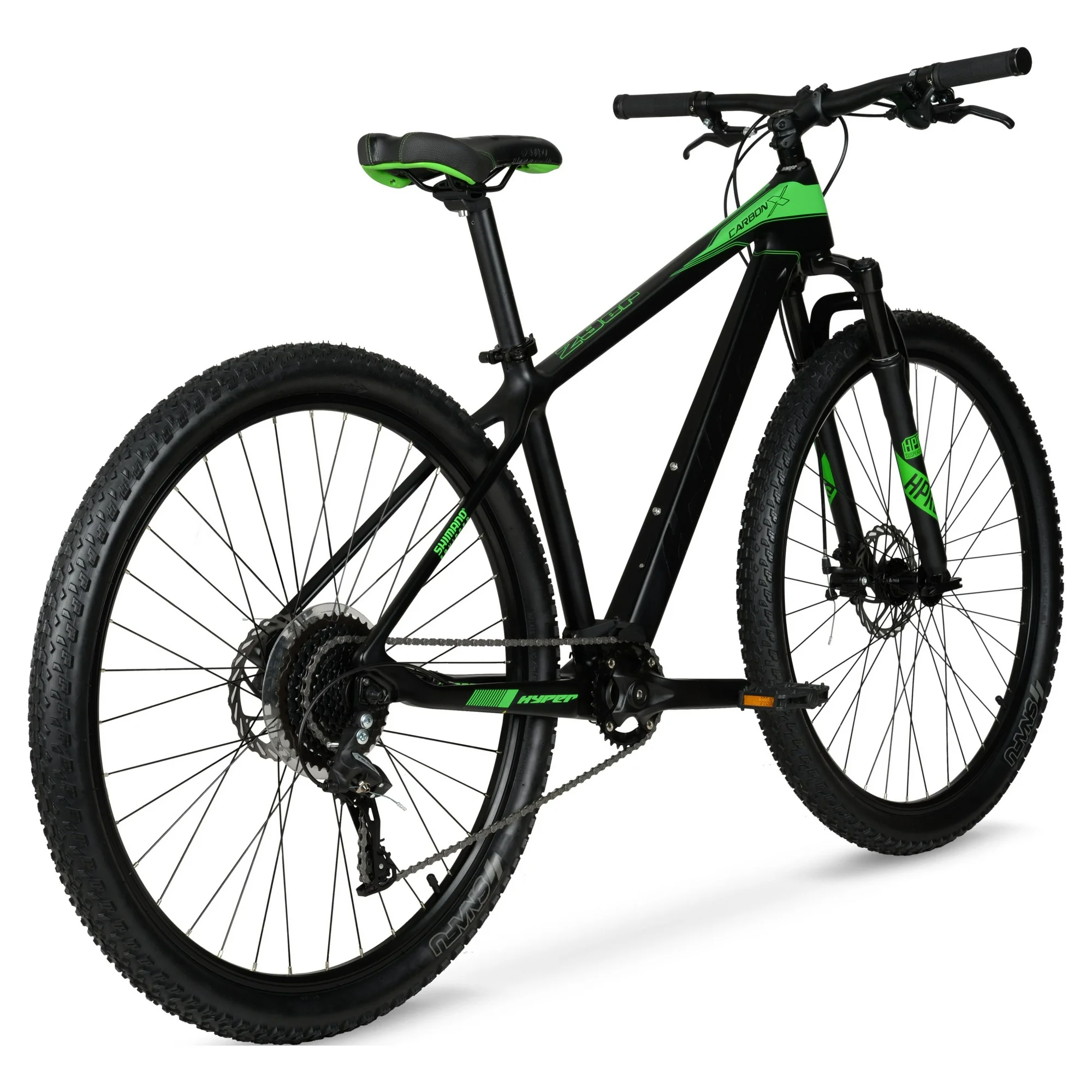 Das 29-Zoll-Herren-Mountainbike Hyper Carbon Fiber bietet mit seinen herausragenden Spezifikationen ein außergewöhnliches Preis-Leistungs-Verhältnis. Dieses ultraleichte Bike ist eine einmalige Gelegenheit, denn es ist schwierig, ein anderes Carbonfaser-Bike zu einem so erschwinglichen Preis zu finden. Genießen Sie alle Vorteile eines leichten und robusten Carbonrahmens. Das 29-Zoll-Hyper Carbon-X ist ein perfektes Mountainbike mit Federgabel für lange Trail-Touren oder auch für entspannte Fahrten in der Nachbarschaft. Der Carbonfaserrahmen mit Federgabel verbessert das Handling sowohl auf der Straße als auch im Gelände. Ausgestattet mit 29 x 2,30 MTB-Reifen für verbesserte Geländegängigkeit und einer 9-Gang-Schaltung. Zusätzlich verfügt das Bike über Scheibenbremsen vorne und hinten sowie einen Oversize-Lenker und -Vorbau für optimale Kontrolle. Der hochwertige MTB-Sattel, die 3-teilige Kurbelgarnitur und die Aluminiumfelgen tragen zusätzlich zur hohen Gesamtqualität und Performance bei. Ideal für Fahrer mit einer Körpergröße von 1,57 m bis 1,78 m und einem maximalen Gewicht von 125 kg.