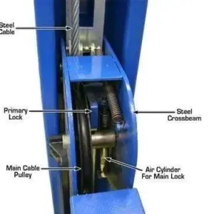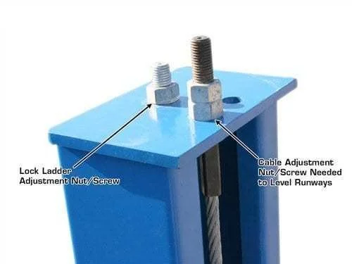 The Atlas® 412 uses a high strength cable system (with a under runway oversized hydraulic cylinder) powered by a 220 volt (single phase) power unit to raise and lower the lift.