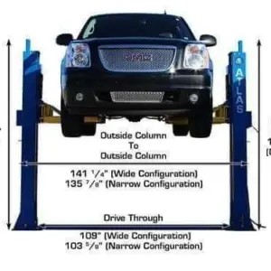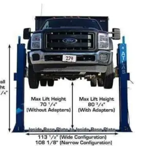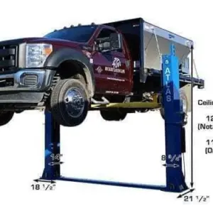 This lift is perfect for those commercial garages that want to lift heavier vehicles but have limited ceiling height. The Atlas BP12000X can be installed at two different width settings to accommodate wider trucks or trailers and to facilitate “driving between” the lift columns.