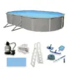 - Accessories: Includes a 1,600 GPH sand filter pump, 250 grams of Polysphere pool filtration balls (washable, reusable sand filtration replacement), a ladder, pool cover, and a repair patch.