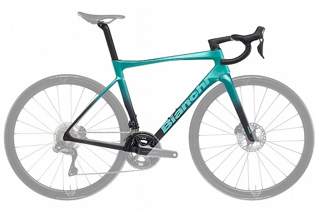 Rahmen: Specialissima PRO Carbon HM mit Bianchi CV, ausschließlich elektronische Schaltgruppen, komplett innenverlegte Züge, Acros ICR Steuersatz, Direct-Mount-Bremsen, PressFit BB 86,5 x 41 mm, Größen 47–50–53–55–57–59 cm
