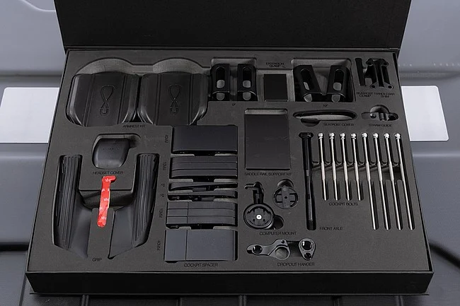 Travel is a big part of any triathlete’s race routine. Streamlining the process of getting a bike to the start line can help reduce stress and improve the racing experience. The CADEX Tri frameset factored this into its overall design, minimizing the amount of disassembly and reassembly needed. The frameset also comes with a purpose-built Topeak travel case.
