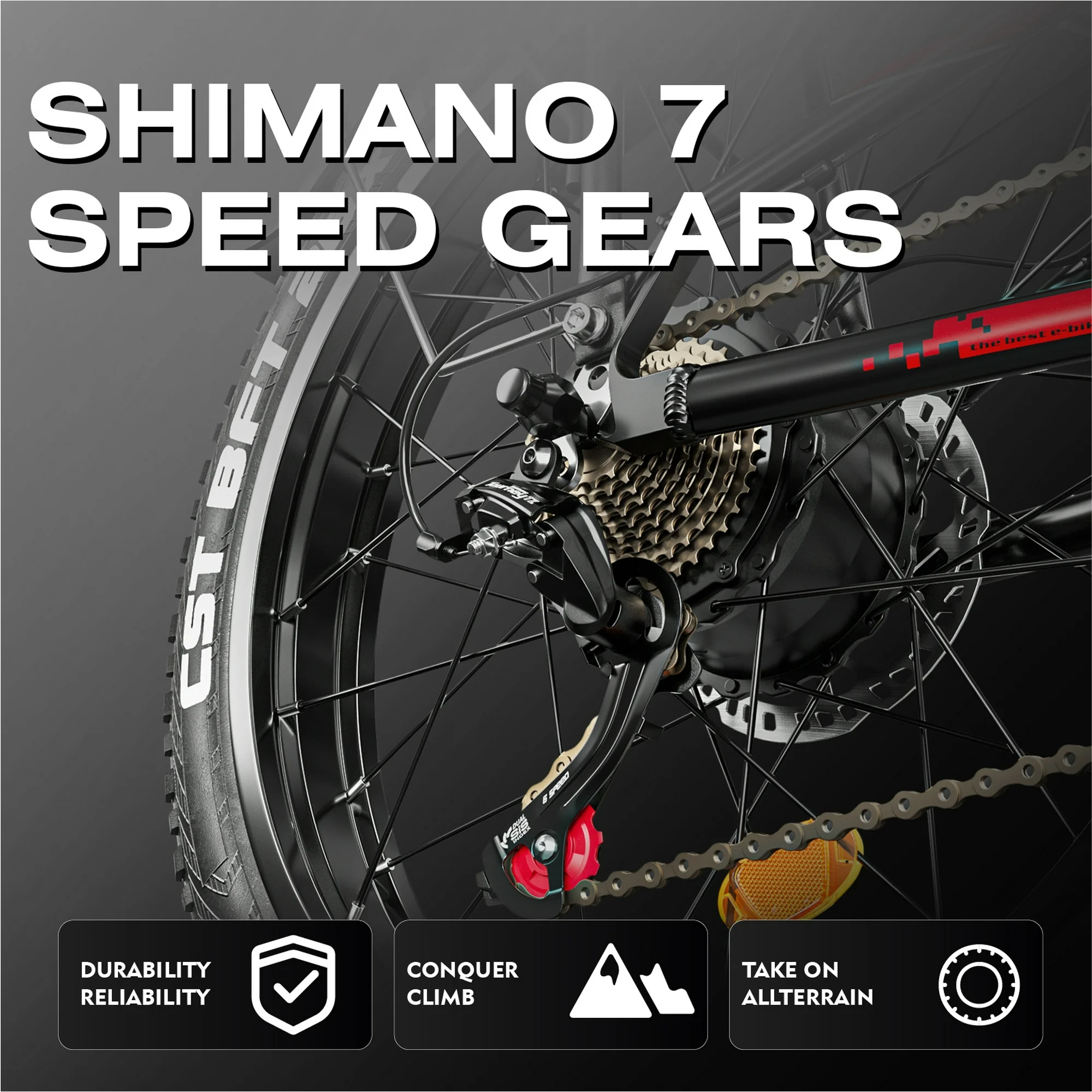 - Tires: Professional mountain 26″*4.0 anti-skid tires