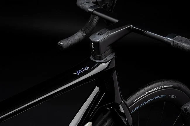 The V4Rs has unique carbon laminations, designed and tested with particular attention to the areas of the frame most subject to tension. Pedaling power is transmitted to the frame immediately and effectively, more than any other bike in the World Tour. The front area of the bike has been optimized with lines that follow and facilitate airflow. The V4Rs is the bike you want to be on when you are alone, in a breakaway, on your way to victory.