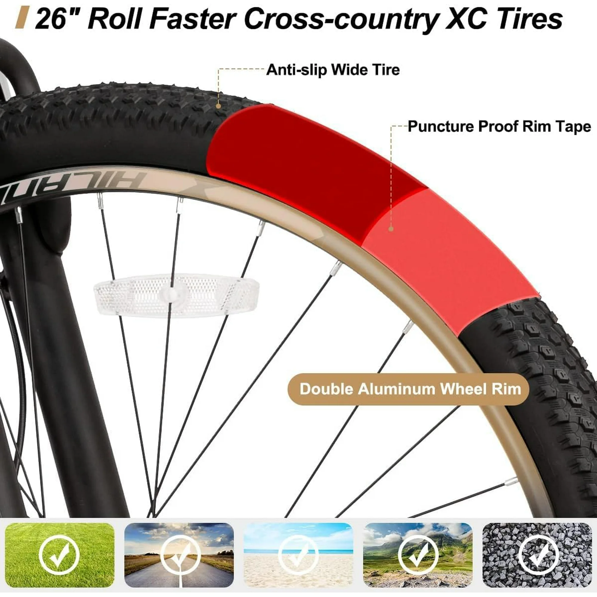 【Ideal für Einsteiger】Das Hiland MTB H200 ist der perfekte Begleiter für Fahranfänger. Aluminiumfelgen und Magnesiumräder sorgen für geringes Gewicht. Das spezielle Speichendesign reduziert den Luftwiderstand und ermöglicht müheloses Fahren auf Asphalt, Schotter und unbefestigten Wegen.