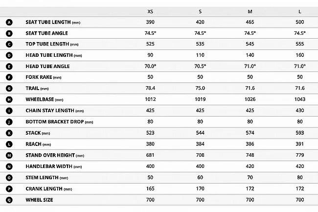 • Handlebar: Giant Contact SLR XR D-Fuse, 31.8mm, 5-degree back sweep, flare drop, composite (XS: 400mm, S: 400mm, M: 420mm, L: 420mm)