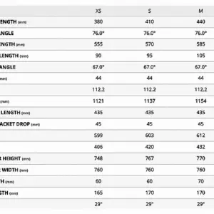 • Shock: Fox Float SL Performance Elite, 165×45, custom tuned for Liv, recommended sag 25%