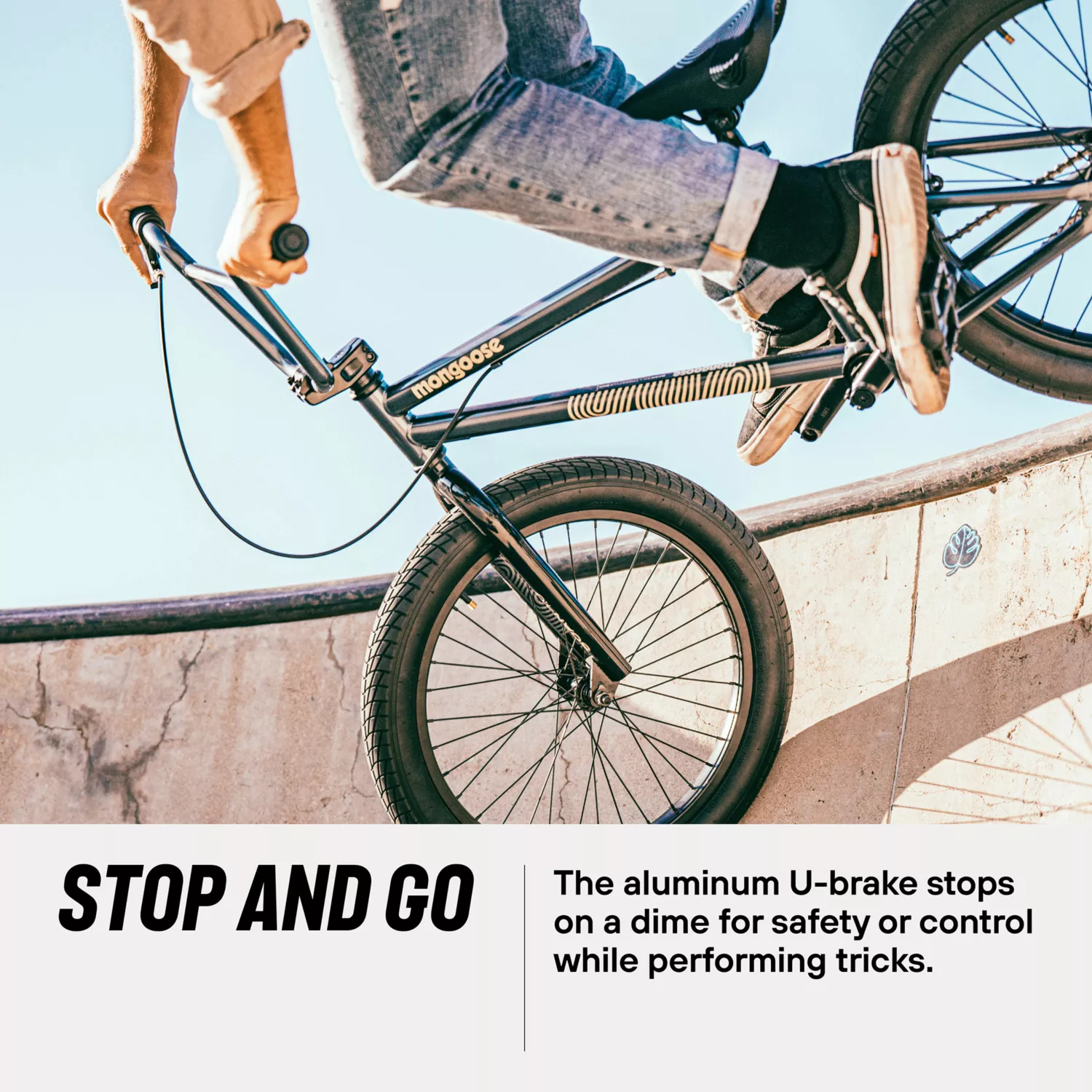 Die Mongoose 20-Zoll-Hi-Ten-Stahlgabel sorgt für stabiles und zuverlässiges Lenkverhalten auf der Straße und im Skatepark.