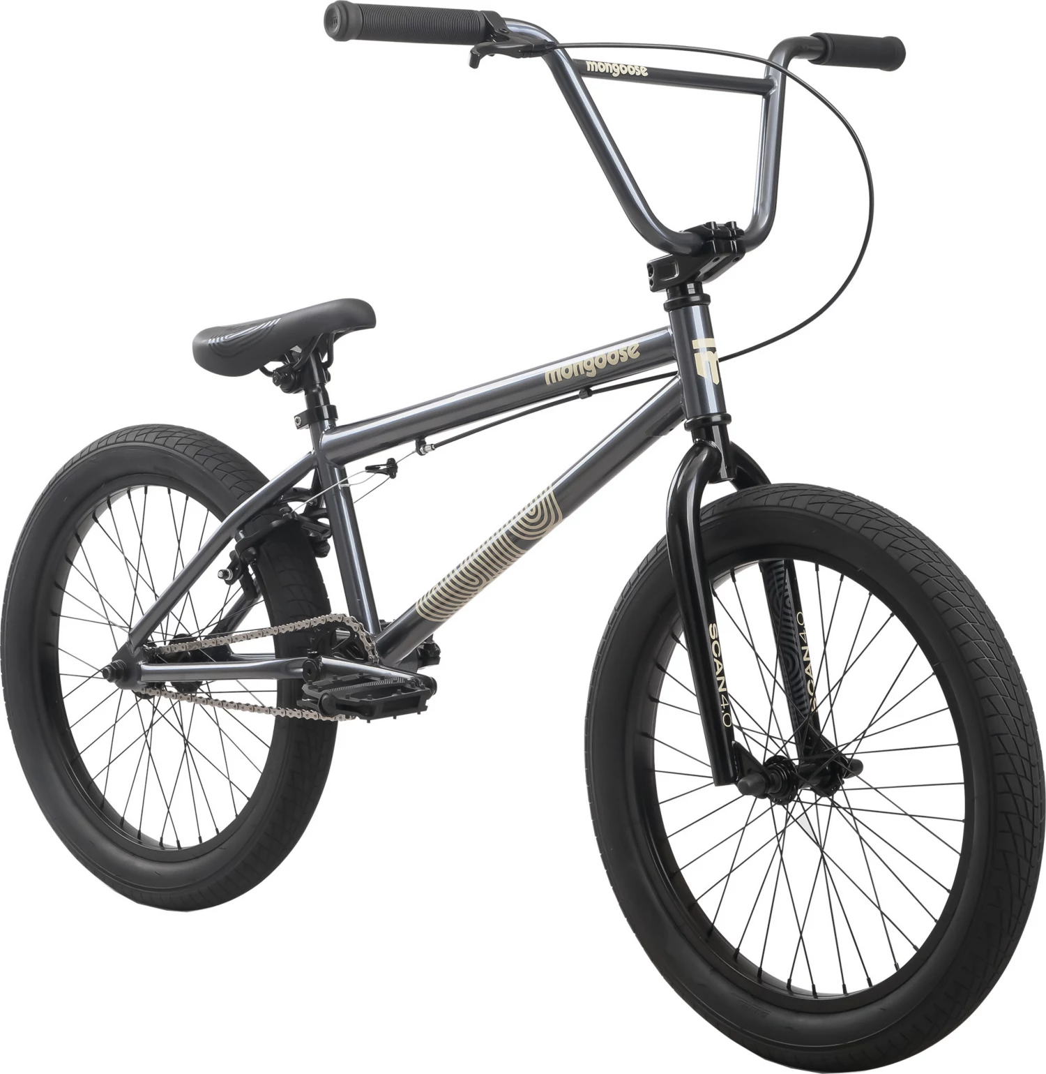 Die reaktionsschnelle Mongoose 20-Zoll-Hi-Ten-Stahlgabel sorgt für optimale Lenkpräzision und ist ideal für den Skatepark.