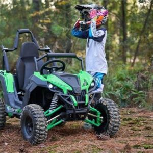 Introducing the new MotoTec Raider 48v 1200w Electric Kids Off Road UTV with Full Suspension! Featuring a powerful 48 volt 1200 watt shaft drive motor, forward & reverse, two speeds, roll cage safety bar, metal throttle/brake pedals, adjustable seat, more leg room than the competition and seat belt. This UTV is rugged and built to last.