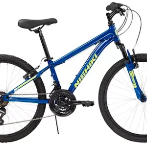 Das perfekte Fahrrad für Outdoor-Abenteuer! Das Pueblo 1.1 Mountainbike bietet dank der reaktionsschnellen Federgabel ein komfortables Fahrgefühl auf Trails und unebenen Straßen. Die leichtgängige 7-Gang Shimano Drehgriffschaltung sorgt für zuverlässige Leistung in flachem und hügeligem Gelände. Die doppelten Felgenbremsen gewährleisten optimale Kontrolle bei Nässe und Trockenheit. Dieses Mountainbike ist mit breiten Geländereifen für hervorragende Traktion ausgestattet. Der komfortable, gepolsterte Sattel verfügt über eine Schnellspann-Sattelklemme aus Aluminium, mit der sich die Sattelhöhe einfach an die jeweilige Situation anpassen lässt. Mit diesem Fahrrad ist er überall dabei – ob auf Trails oder in der Stadt.