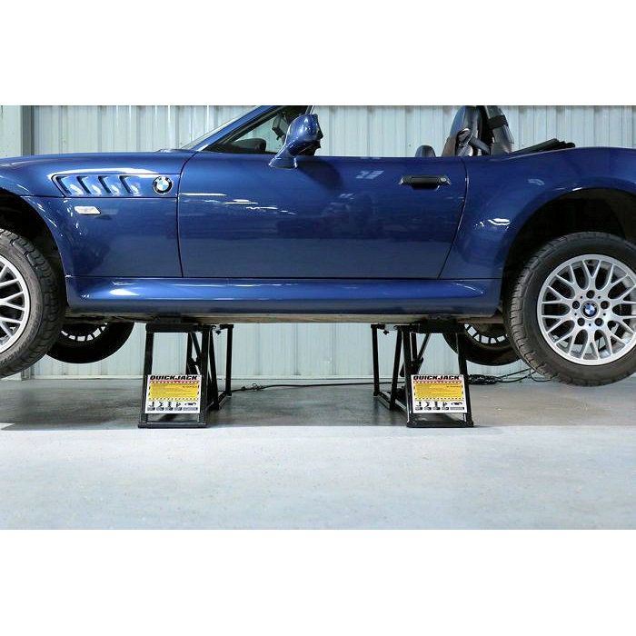 The QuickJack 5000TL Portable Car Lift System is recommended for use with sports cars, sedans & more. This 5,000 lbs. capacity lift is extremely popular, probably our most referenced and most used model when we do demos, videos and training programs. In a way, it’s the go-to portable car lift. If you’re not sure which model is for you, unless you drive a truck/SUV, there’s very little chance your vehicle is too heavy for this lift. The incredible versatility of this model makes it easy to maneuver across parking lots, track spaces and certainly home garages. Sitting only 3 inches off the ground when lowered, it’s arguably the most ideal garage lift for low-stances vehicles. Corvette and Porsche owners love QuickJack!