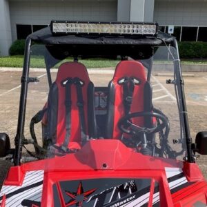 Safety-focused design with roll cage, side nets, and speed limiter.